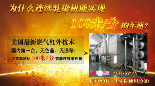 3)該產(chǎn)品極高的烘干效率,其應(yīng)用于染色打底機(jī)后不可用原配置的633預(yù)烘箱,從而徹底消除做高支高密產(chǎn)品時(shí)633造成的縐條、色差等質(zhì)量問(wèn)題,還可消除換品種、換色位時(shí)需要大量的清潔工作燈麻煩,同時(shí)減少占用廠房空間。