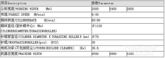 設(shè)置擴(kuò)幅輥、烘布輥、靜電消除器等選用部件,用于不同織物的起毛。