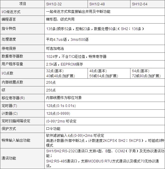 可擴展整體式PLC SH/SH1/SH2系列
