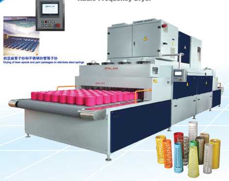 射頻烘干機引進國際先進技術,屬國內首創(chuàng)。本機屬紡織產品在脫水過程后,通過用射頻烘干工藝對紡織產品進行連續(xù)干燥的設備。它適用于合成纖維、人造纖維、毛紡纖維、植物纖維等各種砂型。