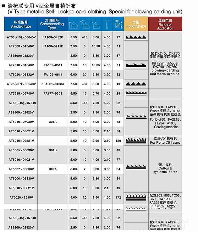 您所在的位置:紡機網(wǎng) >> 光山白鯊針布有限公司 >> 清梳聯(lián)專用V型金屬自鎖針布