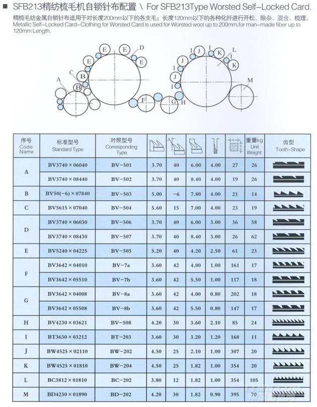 SFB213精紡梳毛機(jī)自鎖針布配置