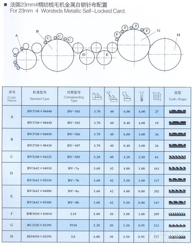 您所在的位置:紡機網(wǎng) >> 光山白鯊針布有限公司 >> 法國23mm4精紡梳毛機金屬自鎖針布配置