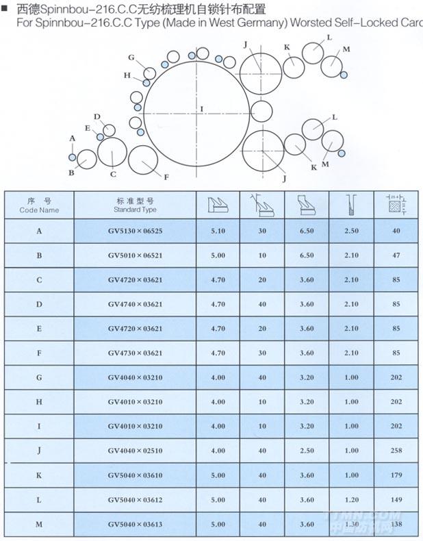 西德Spinnbou-216.C.C無(wú)紡梳理機(jī)自鎖針布配置
