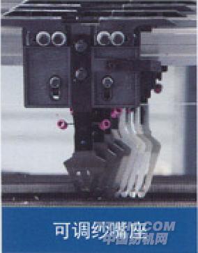 2.自主研發(fā)的可調(diào)添紗導(dǎo)紗器專門運(yùn)用于編織添紗組織,16把紗嘴,將添紗技術(shù)和其他結(jié)構(gòu)相結(jié)合就能形成顏色和結(jié)構(gòu)豐富多彩的效果。