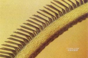 底布面層為橡膠,具有較強(qiáng)的鋼針握持力,由于針高針隙容量大,特別適宜于化纖及其再生纖維和石棉纖維的梳理。