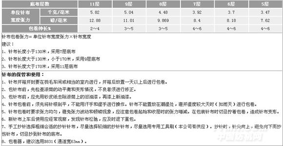 針布包卷張力參考表