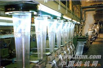 本生產線適用于丙綸或兩種組份的切片熔融紡絲工藝,生產丙綸短纖維或丙綸復合纖維。經改造也可用于生產二種或三種不同成份的非相容高分子聚合物按一定的比例進行混合熔融紡絲,生產出海島型共混纖維。