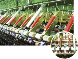 主要結(jié)構(gòu)特點(diǎn) 四羅拉結(jié)構(gòu),通過(guò)過(guò)橋齒輪傳動(dòng)緊密羅拉。 四羅拉網(wǎng)格圈積極傳動(dòng)。 緊密紡負(fù)壓系統(tǒng)采用總風(fēng)機(jī)、總風(fēng)管。 模塊化設(shè)計(jì),6錠為一單元體。 負(fù)壓分配系統(tǒng)配置合理,各吸口氣流一致性好。 導(dǎo)形管吸口優(yōu)化設(shè)計(jì),有利于須條集聚。 緊密紡負(fù)壓采用變頻技術(shù)控制。 網(wǎng)格圈張緊裝置保證須條運(yùn)行平穩(wěn)(專利)。 配備自動(dòng)除塵裝置,提高成紗質(zhì)量。 緊密紡效果 減少毛羽,3mm以上毛羽可減少60%以上。 相同的紡紗工藝,成紗強(qiáng)力比普通環(huán)錠紡提高5%~15%。 改善細(xì)紗條干CV%值。 提高纖維利用率。 在同普通環(huán)錠紡相同強(qiáng)力的條件下可提高細(xì)紗產(chǎn)生效率。 改善工作環(huán)境,減少車間飛花。 提高織造設(shè)備的生產(chǎn)效率。 織物外觀光潔,耐磨性增加。 紡紗環(huán)境要求 為使緊密紡成紗質(zhì)量達(dá)到最佳效果,必須具備如下條件: 1、 采用緊密紡裝置的細(xì)紗機(jī)必須配備巡回清潔器。 2、 紡紗車間的溫、濕度和空氣含塵濃度要求: a.溫度:全年25 - 30℃ b.相對(duì)溫度:55%±5℃(棉) 75%±5℃(毛) 3、 車間管理要求 a.合理確定緊密紡元件的清潔周期 b.定期檢查各種清潔設(shè)施的運(yùn)行狀況