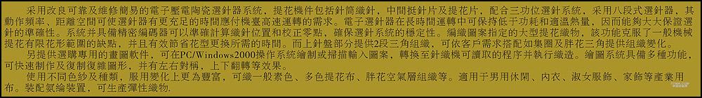您所在的位置:紡機(jī)網(wǎng) >> 石獅市寶翔針織機(jī)械有限公司 >> BX-DCJ/SCJ雙面電腦提花針織圓緯機(jī)