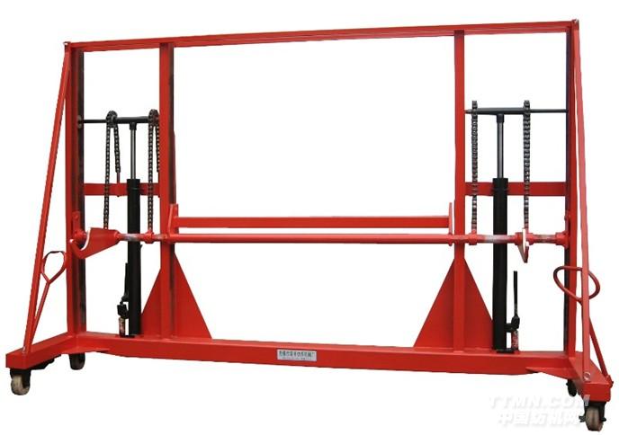 特點:液壓垂直提升綜框,速度快,效率高,可同時操作兩套織軸上下軸,雙油缸同步提升,均衡穩(wěn)定,雙油泵帶綜框同時上機,四輪同步,下托鉤橫向滑動調(diào)節(jié)織軸上軸間距。