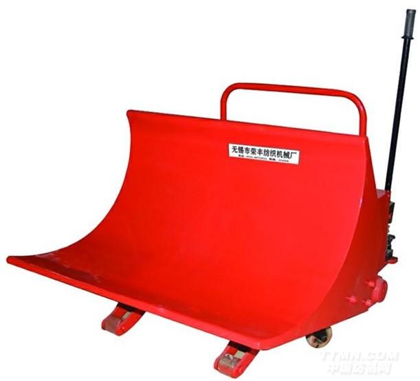特點:液壓翻斗式,斗緣離地低,布卷卷裝離地空間小時,可直接推入織機落布,四輪同步,任意角度轉(zhuǎn)向,放下定向輪,可直線推行。