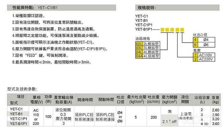 YET-B1/C1抵抗式電動注油機(外接PLC控制型)