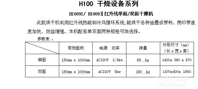 H1009II雙面紅外線干燥機