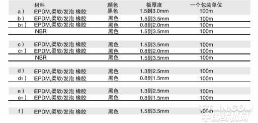 密封條,通過自夾緊,既起到密封的作用,又保護(hù)了切口鋒利的邊緣。基底部分由軟橡膠制成,內(nèi)嵌鋼絲。密封部分由橡膠發(fā)泡而成材料:EPDM或NBR基底:軟橡膠。密封:發(fā)泡橡膠。
