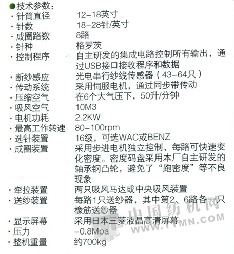 GD-NJ08全電腦針織無縫內(nèi)衣機經(jīng)過本公司多年的自主傾力研究,該機秉承8路無頭機以及12路機器的制造經(jīng)驗,增加了機頭扎口機構(gòu),能根據(jù)工藝要求自動完成織物的羅口編織,不需要縫紉加工。該設(shè)備可編織毛圈、集圈等各種組織,擁有強大的添紗提花能力,用于生產(chǎn)內(nèi)衣、外衣、泳衣、運動衣及保健織物等。